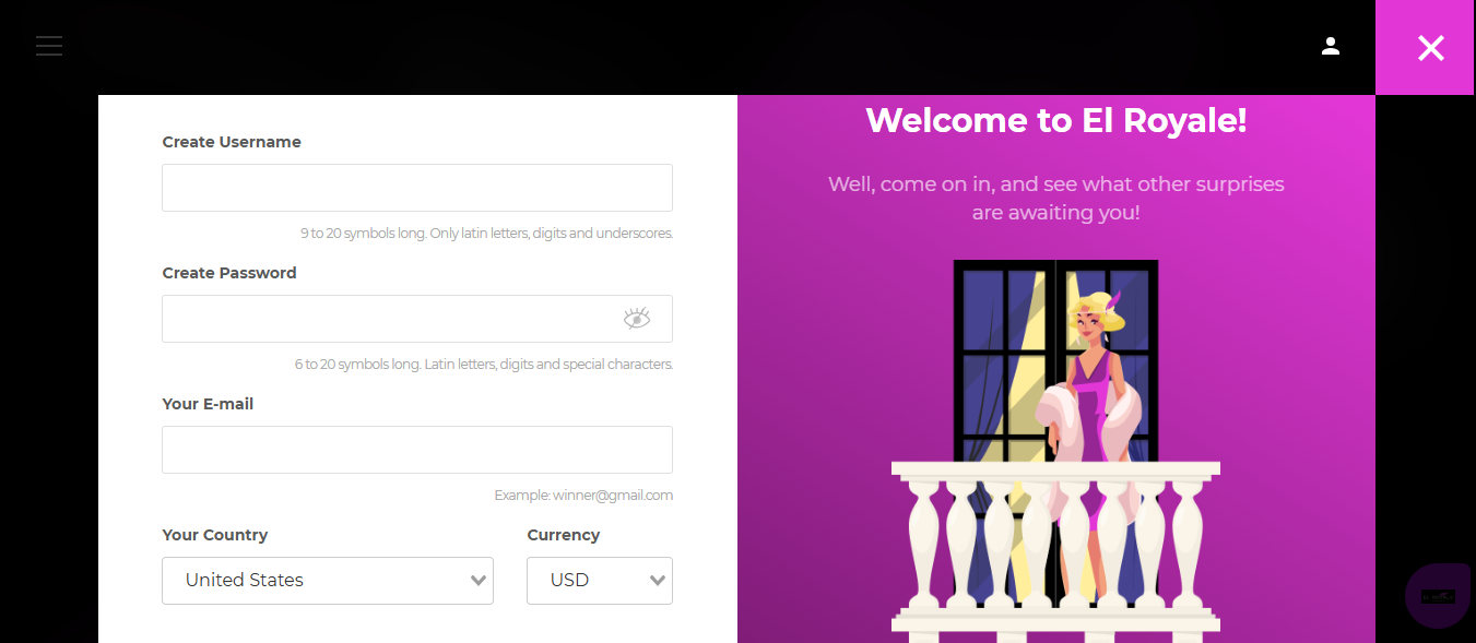 Simple Sign Up & Login Process at El Royale Casino